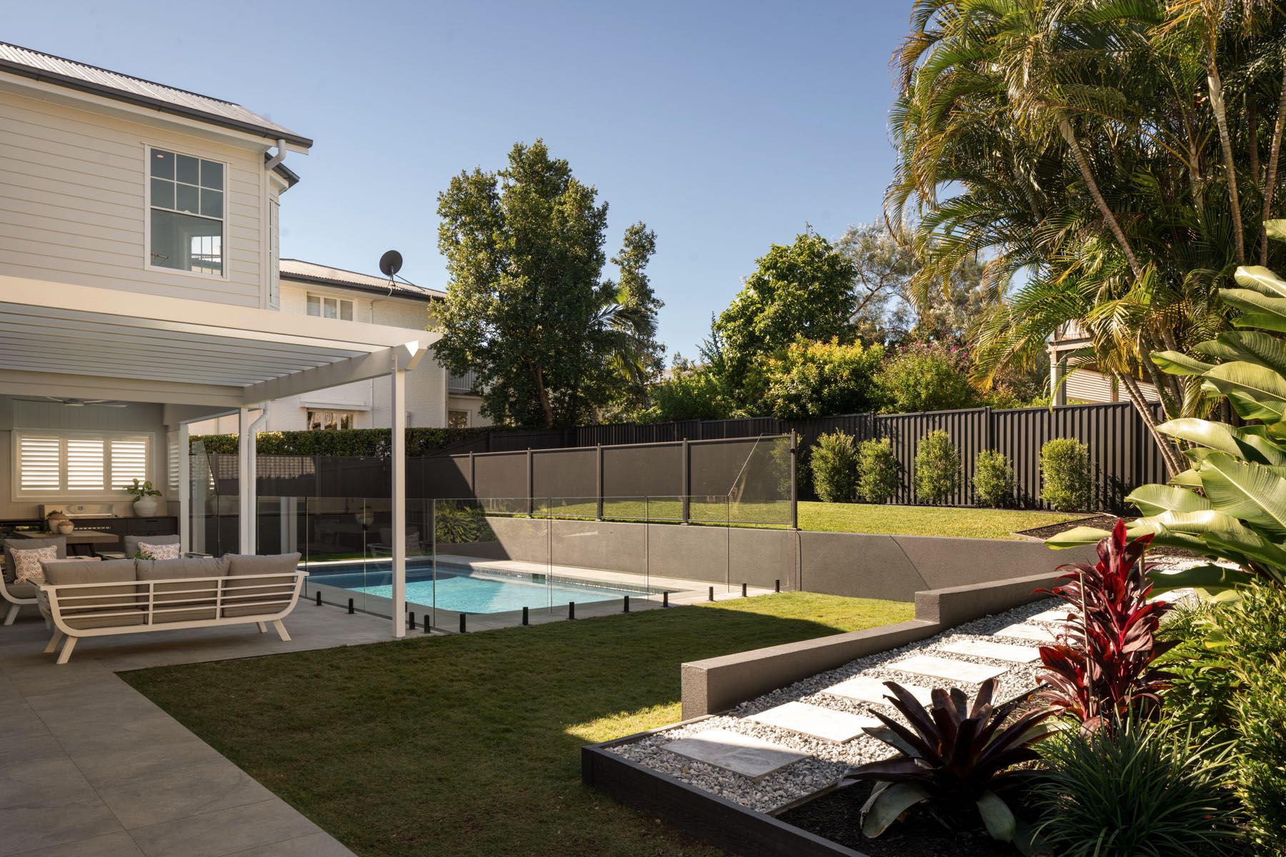 Premium materials feature extensively across the home and every space was finished with precision to achieve a clean contemporary aesthetic. The landscaping was fully completed as part of the build with structured gardens pathways and outdoor living spaces that enhance the overall design.